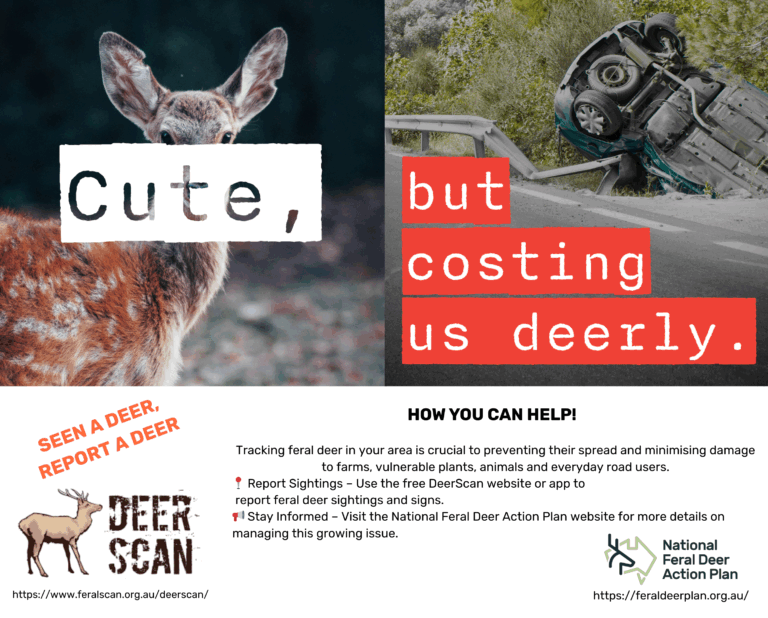 First trialled in 2022, the National Feral Deer Action Plan’s ‘Cute but costing us Deerly’ campaign has proven effective in building social licence for lethal control, while encouraging the public to contribute valuable data through FeralScan.